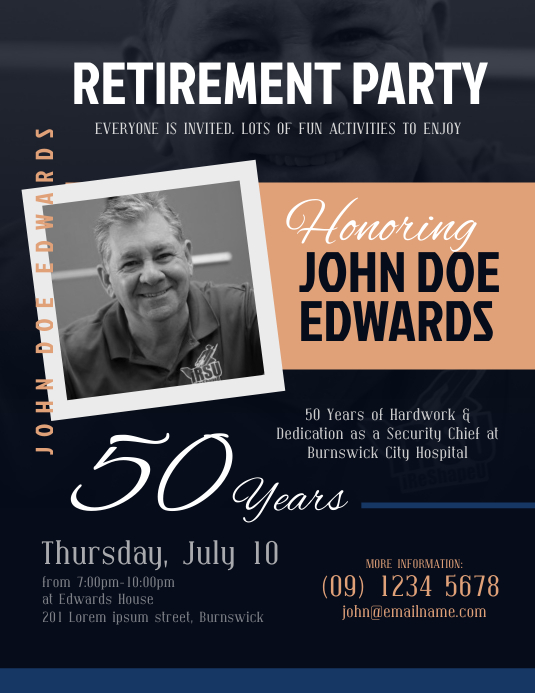 Retirement Party Flyer Template. Try our easy-to-use design tools or choose one of our thousands of templates. Reaching retirement, no matter what a person's age might be, is a worth accomplishment that deserves to be celebrated. on the off unplanned that you compulsion thoughts and recommendation on keeping in be adjacent to in the manner of one, there are consistently every second choices for you to have one. You can generally employ the administrations of an clever event specialist who can compose the archive for your benefit. You can likewise ride the Internet and discover thing template and programming which can back up you gone your undertaking.