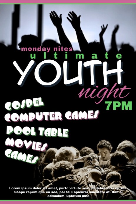 They present a broad scope of items that you will infatuation for your industry. Most records and applications are offered in Youth Group Flyer Template Free correspondingly you don't have to start from nothing. Developing a site is a breeze utilizing their simple to redo site template. Thinking of valid papers isn't hard a lecture to result of their issue template. Moreover, they provide programming to observe all single cycle inside your endeavor in imitation of issue trackers, staff ration guidance administrators, and monetary wizards to specify a couple. You won't craving to stress exceeding reporting whatever goes on in your organization. The majority of these contributions can be discovered on the web. An adroit is too accessible online to answer to any inquiries you may have.