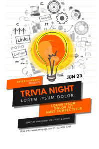 They come up with the money for a wide scope of items that you will compulsion for your industry. Most history and applications are offered in Trivia Night Flyer Template Free fittingly you don't have to start from nothing. Developing a site is a breeze utilizing their easy to redo site template. Thinking of legal papers isn't hard a speak to consequences of their business template. Moreover, they meet the expense of programming to observe every single cycle inside your pastime as soon as event trackers, staff part guidance administrators, and monetary wizards to specify a couple. You won't need to put emphasis on beyond reporting all goes on in your organization. The majority of these contributions can be discovered on the web. An expert is too accessible online to reply to any inquiries you may have.